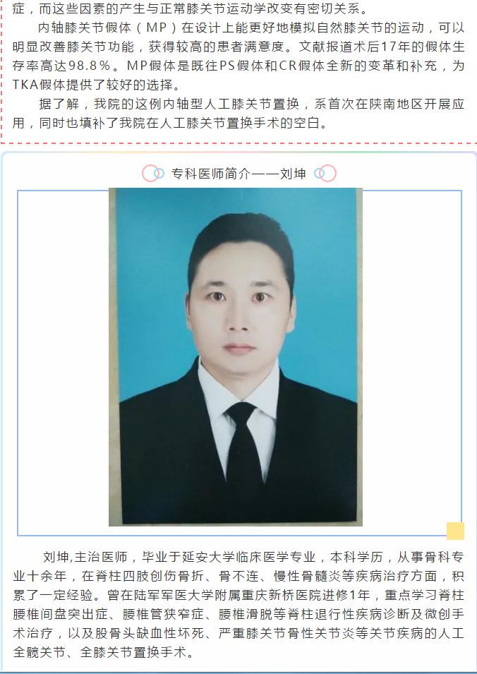 我院创伤外科开展陕南地区首例内轴型人工膝关节置换