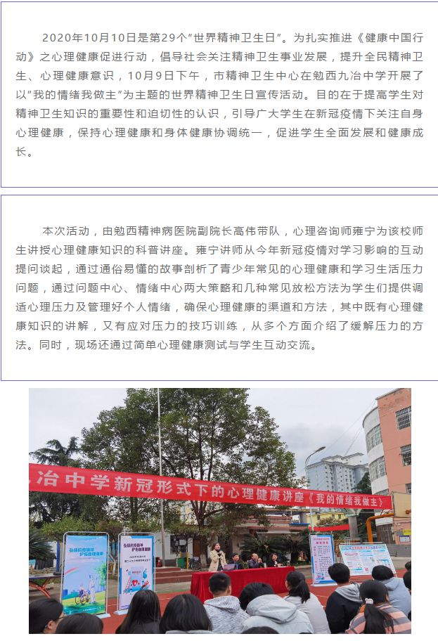 市精神卫生中心开展 “世界精神卫生日”主题讲座活动