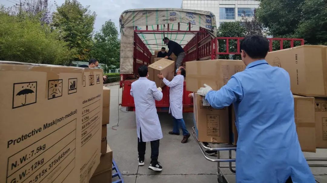 10月27日下午,一辆满载深圳市朗合口腔数字医疗有限公司捐赠的防疫物资的车辆,在汉中市阳光公益协会和汉中市红十字会的安排下,运送至医院。医院工作人员接力搬运,一箱箱防护服、N95口罩等专业医疗物资被整齐地码放在地上。