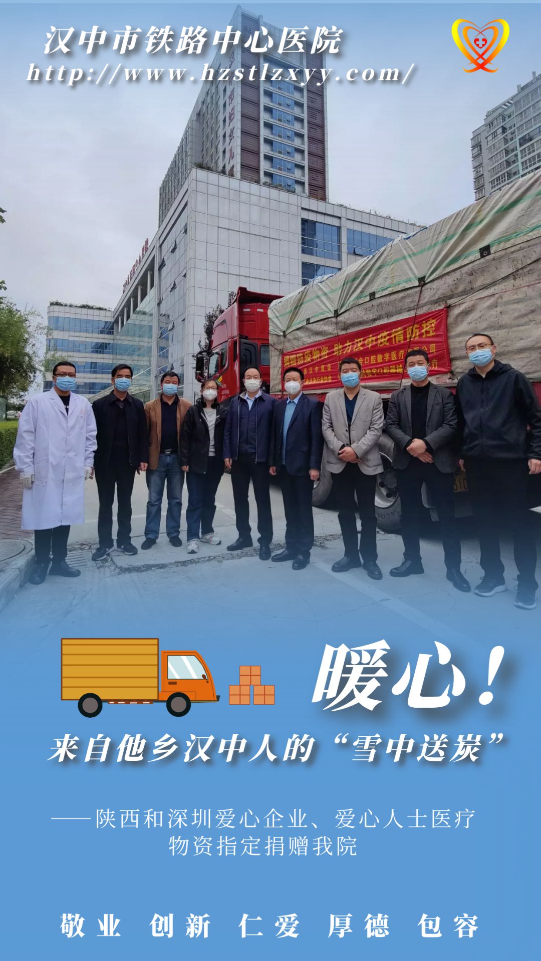 院党委副书记、院长陈建华向汉中市阳光公益协会、红十字会以及社会各界爱心人士表达谢意:“衷心感谢爱心企业、爱心人士的“雪中送炭”,在抗疫的白热化阶段,我院将继续把各爱心企业的热心化作疫情防控的动力,坚定共克时艰的信念和决心,全力以赴”。