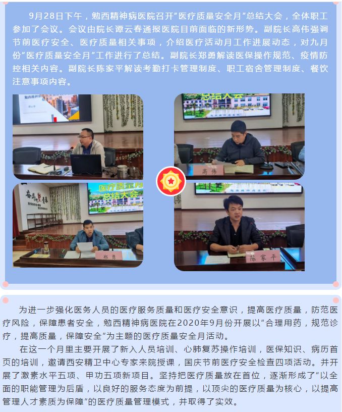 抓质量 强基础 永远在路上 —勉西精神病医院医疗质量安全月侧记