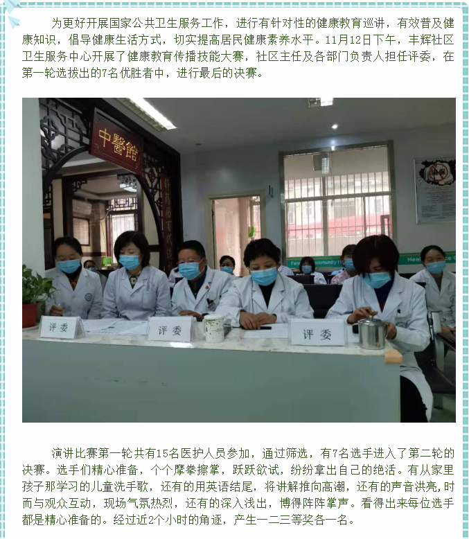 探索创新 激发活力 争做新时代社区卫生服务人 记丰辉社区卫生服务中心健康教育传播技能比赛