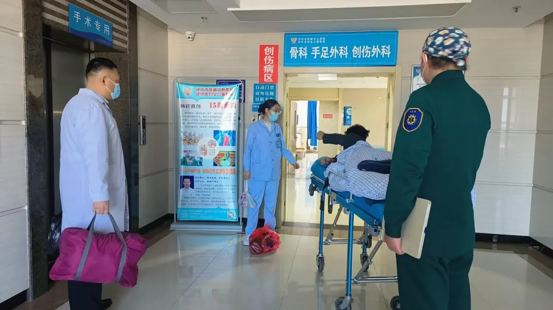 王叔叔住院期间,由于情况特殊,仅与儿子相伴,我科积极协调出病房让他与儿子一起陪护,尽可能的给他提供舒适的住院环境,住院期间进行了先后进行两次VSD敷料负压吸引引流术,利用科室擅长的显微外科技术解决患者皮肤缺损问题。11月5日,王叔叔术后恢复良好,伤口干燥无渗出,胡昭华主任、黄佳丽护士长和主管医生陈华主任一起护送王叔叔出院,为了保障王叔叔回家的路程安全,陈医生更是主动承担起护送王叔叔回家,这是一名医生的初心和使命,创伤外科医护人员都应不忘初心,牢记使命,践行“以病人为中心”的宗旨,努力打造医德高尚、技术过硬的医疗团队,给予患者更优质的服务。