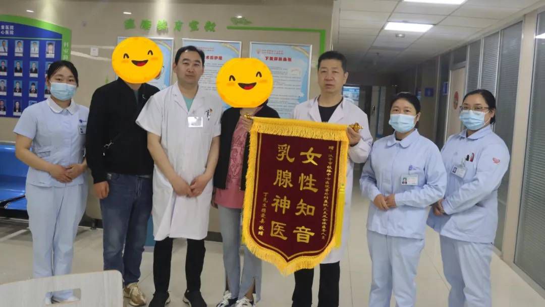 锦旗上“乳腺神医,女性知音”八个金灿灿的大字,承载着她对聂帆主治医师及医护团队无尽的感恩。这场与乳腺癌抗争的战役中,医者用专业与温度,托起了她对生命的希望。