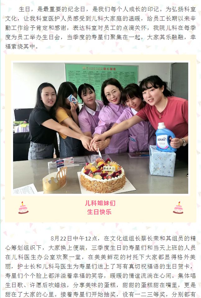 浓浓温情暖人心----记儿科三季度生日会