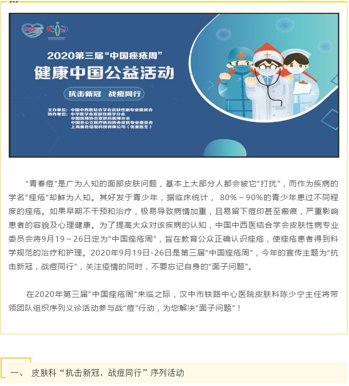 “抗击新冠,战痘同行” ——皮肤科序列义诊活动即将开启