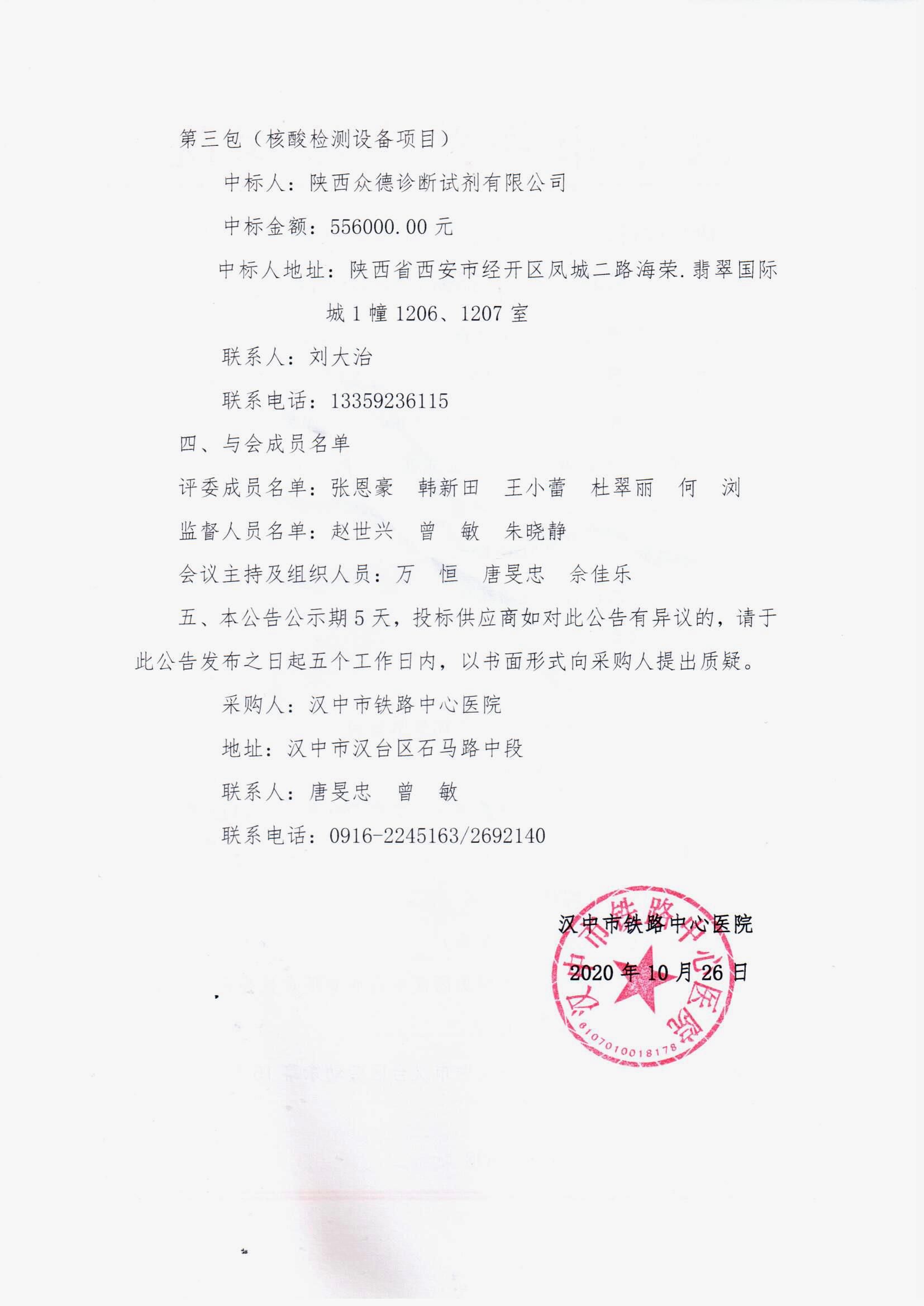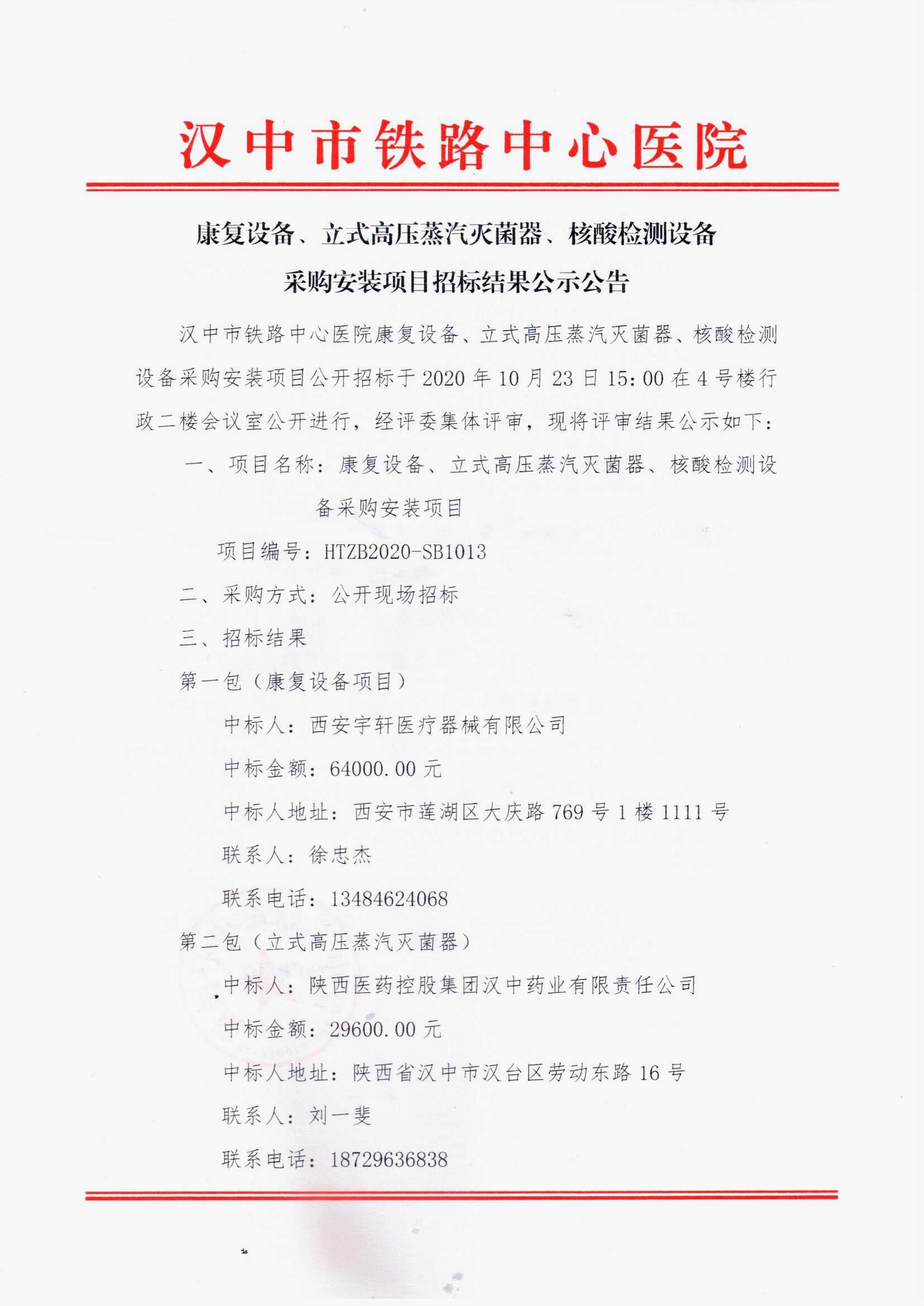 康复设备、立式高压蒸汽灭菌器、核酸检测设备采购安装项目招标结果公示公告