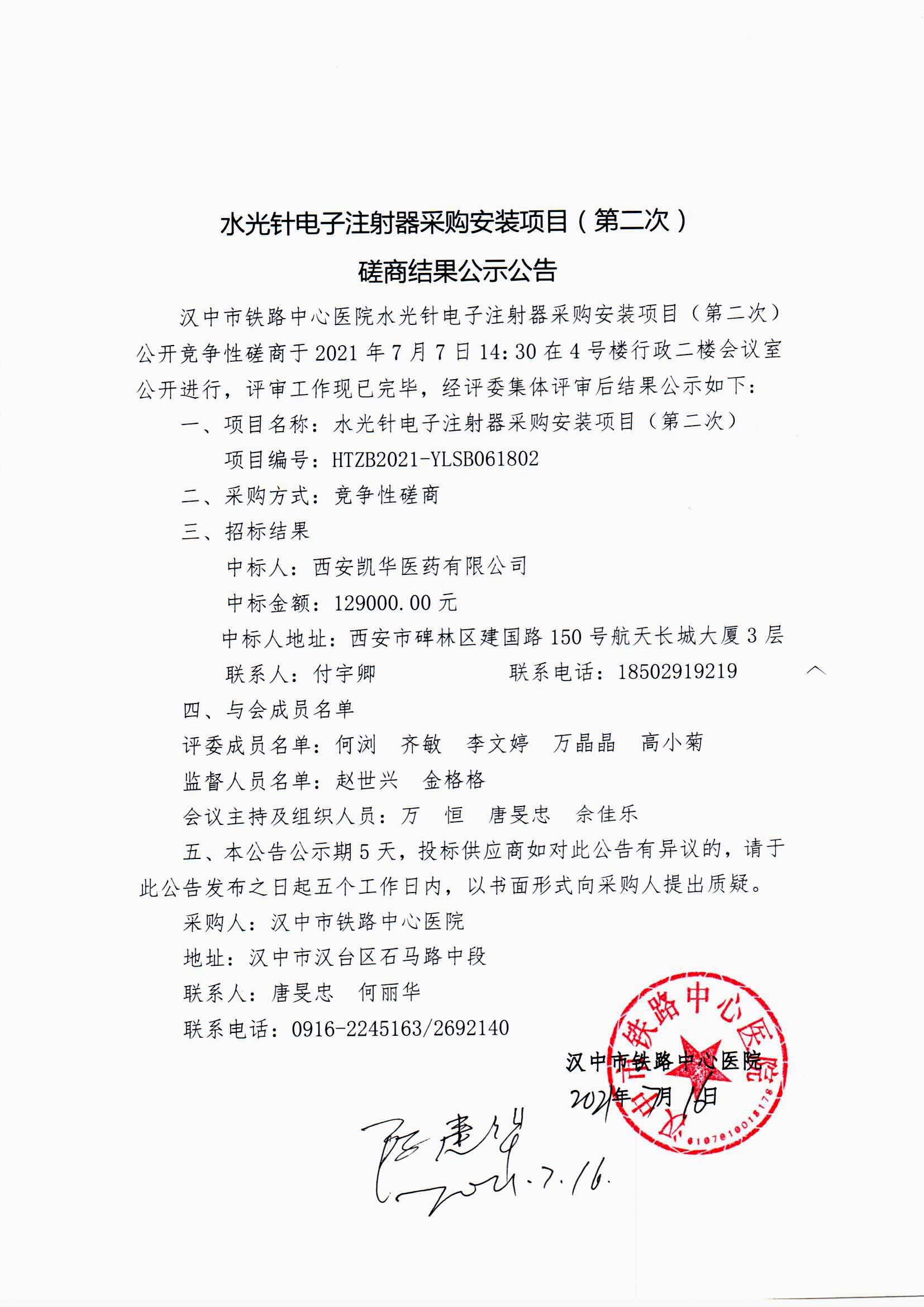 水光针电子注射器采购安装项目(第二次)磋商结果公示公告