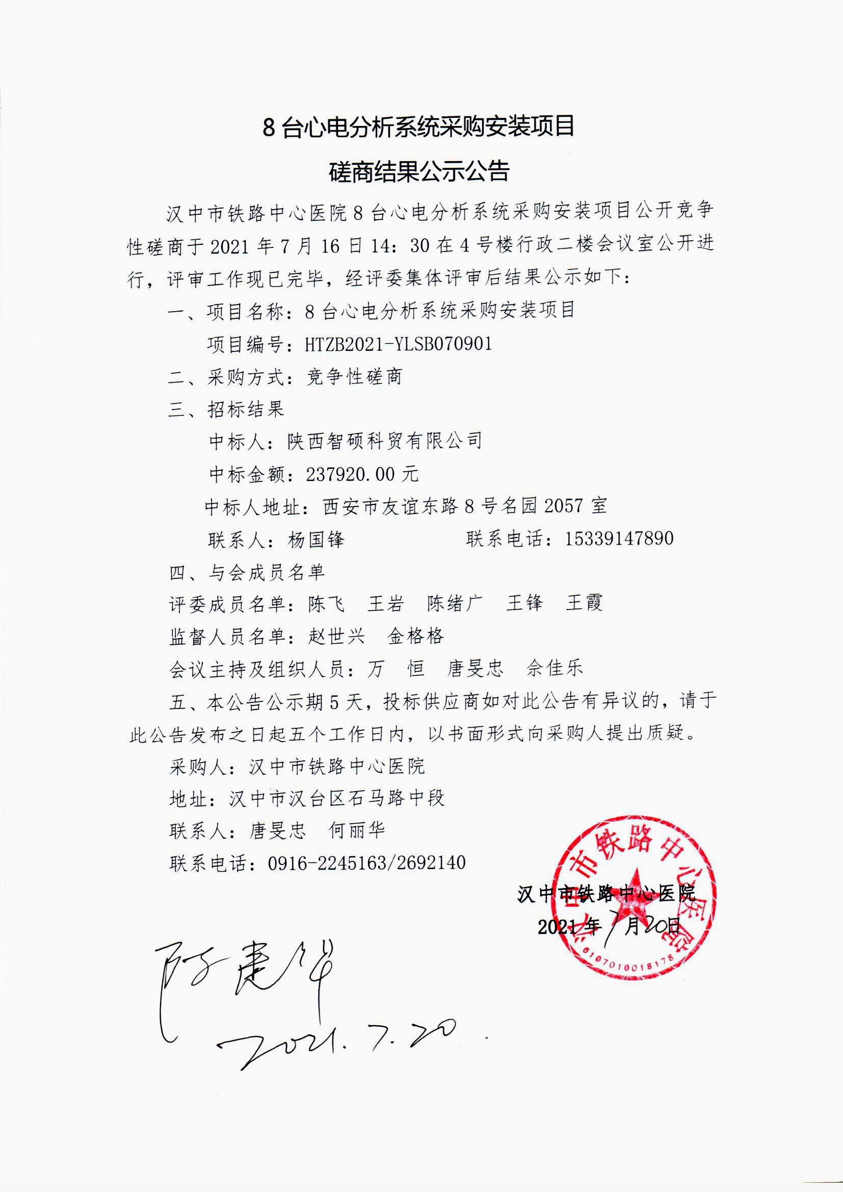 8台心电分析系统采购安装项目磋商结果公示公告