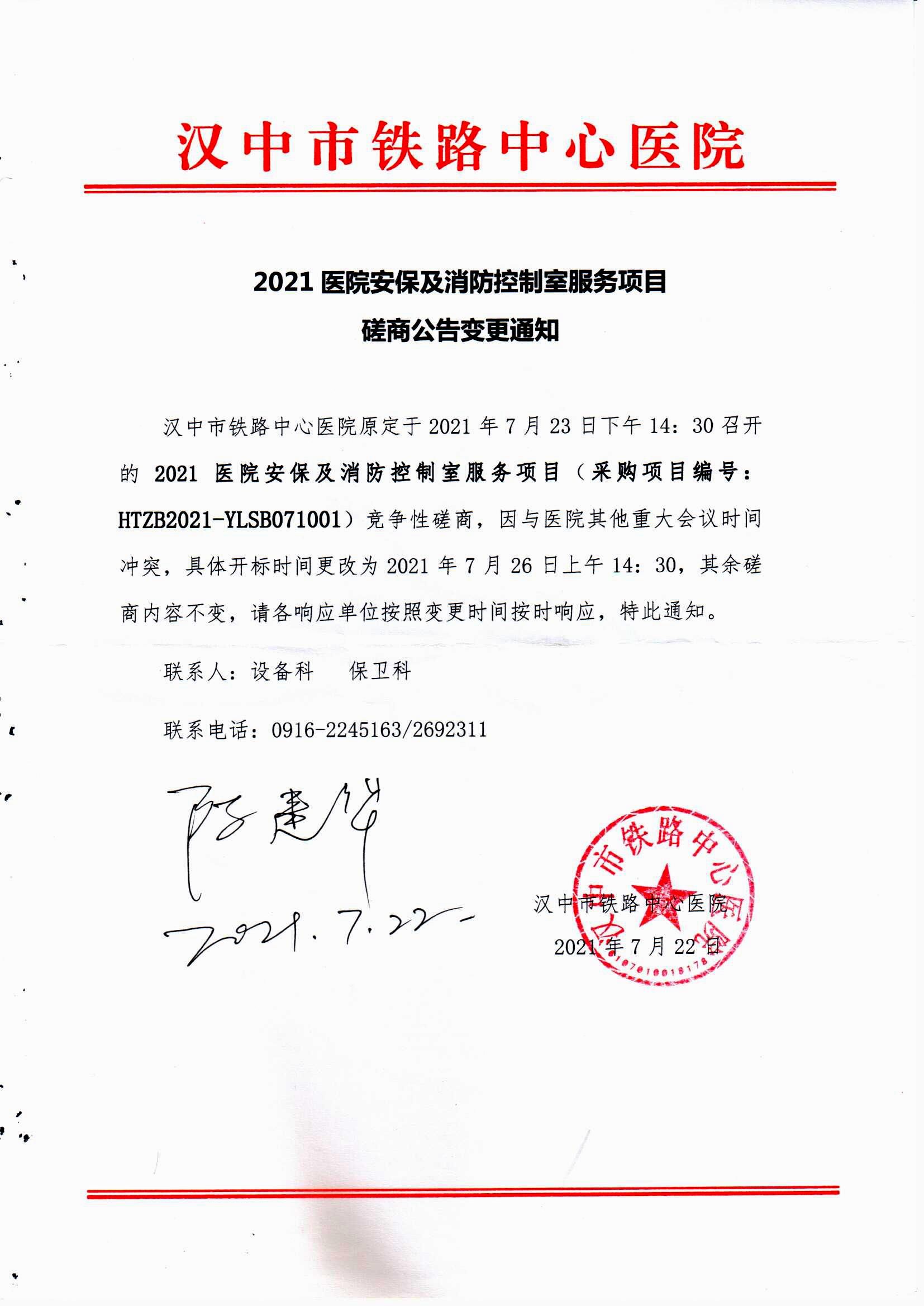 2021医院安保及消防控制室服务项目磋商公告变更通知