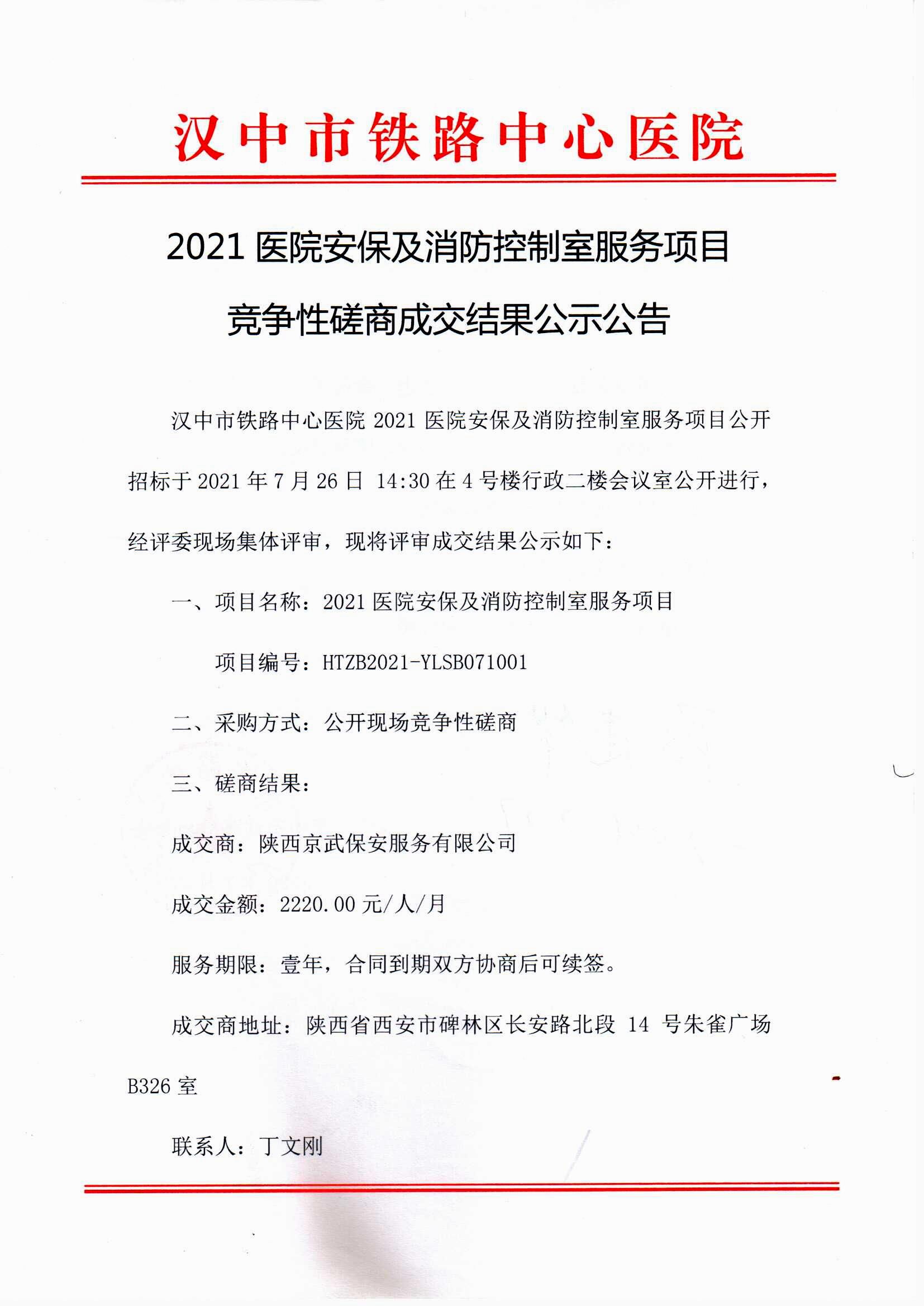2021医院安保及消防控制室服务项目竞争性磋商成交结果公示公告