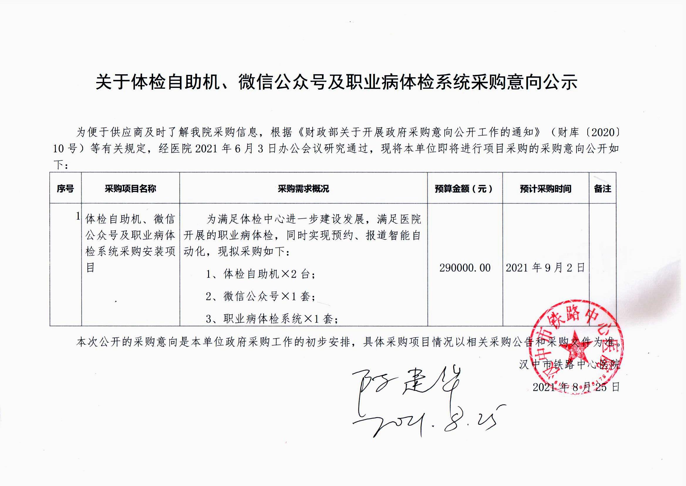 关于体检自助机、微信公众号及职业病体检系统采购意向公示
