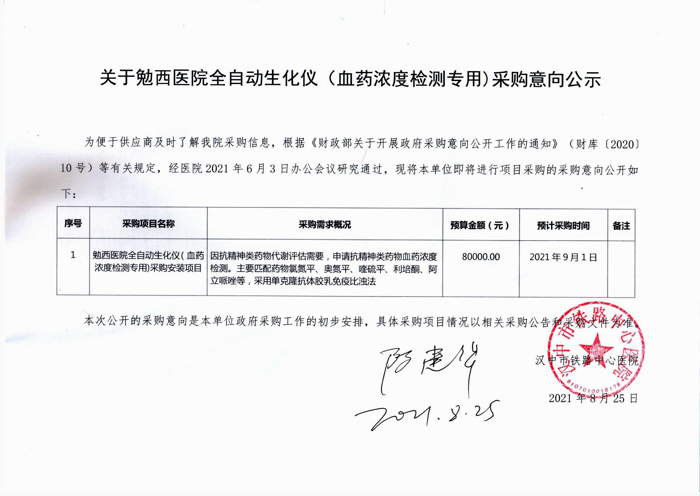 关于勉西医院全自动生化仪(血药浓度检测专用)采购意向公示