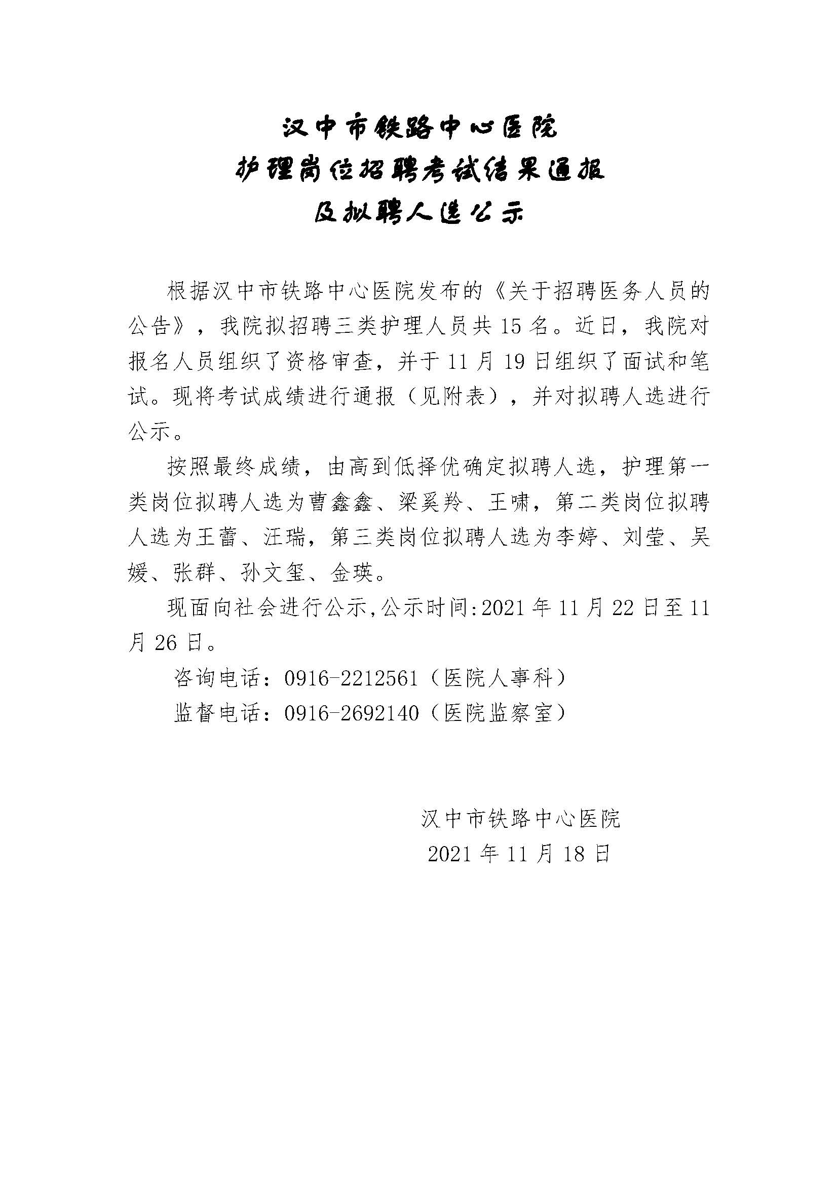公海710jcjc护理岗位招聘考试结果通报及拟聘人选公示
